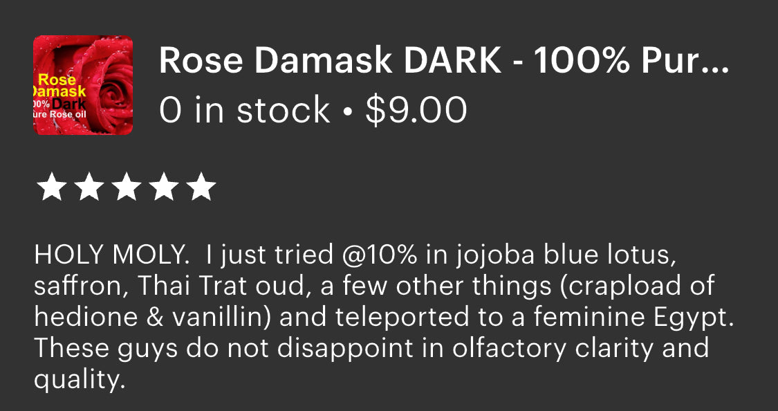 We have created this perfume using pure ethical Siberian deer musk which was macerated in a base oil made of super deep, dark Damask rose oil, fine Indian Sandalwood, Ambergris and more…. This unisex oil is a deep and complex maceration not for faint of heart. It has a sweet strong presence that will leave you wondering why you ever used Synthetic oils.